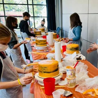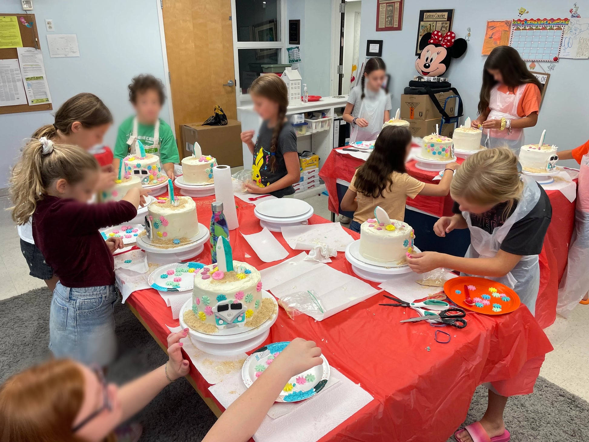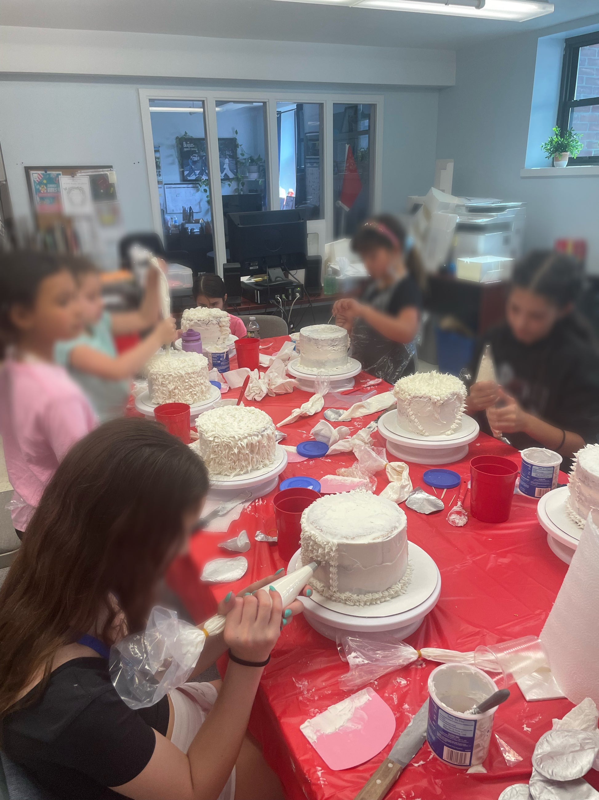 Children's cake decorating class where participants learn to stack, ice and decorate a 3 tier 7-inch cake.