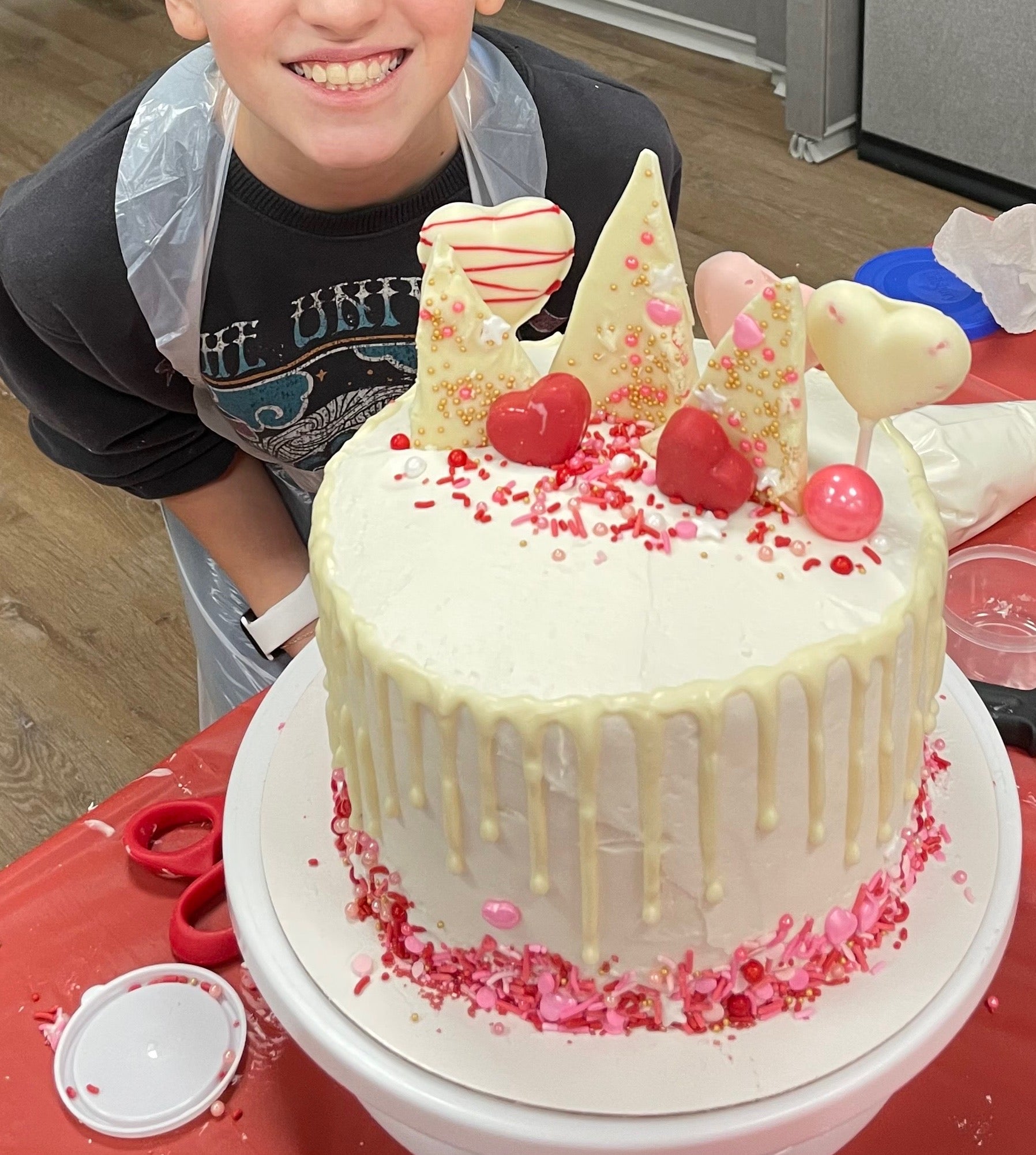 Children leave with a fully decorated cake in a cake box and a Cake Decorating Certificate.